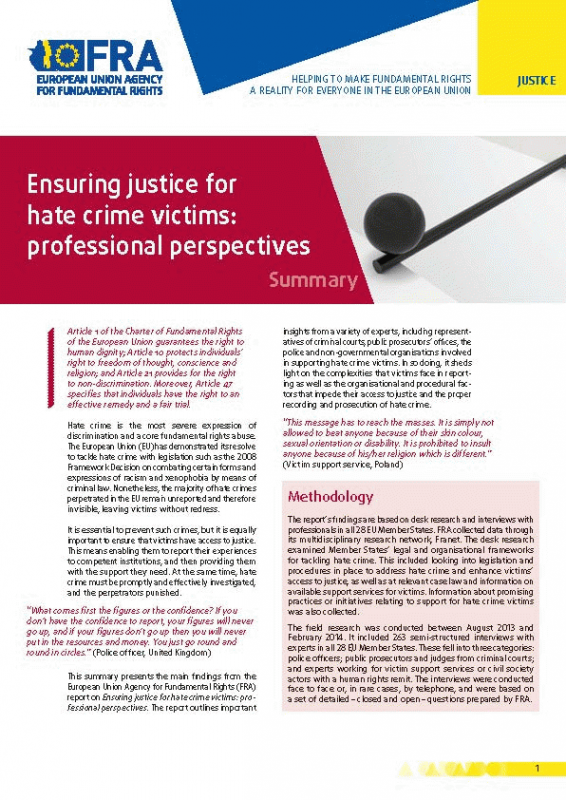 report on Ensuring justice for hate crime victims: professional
