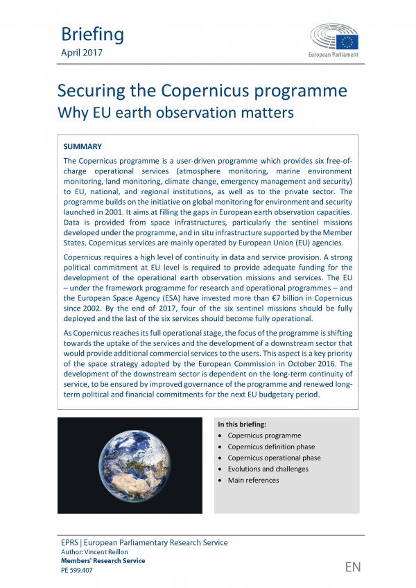 Securing the Copernicus programme [Recurso electrónico] : Why EU earth observation matters