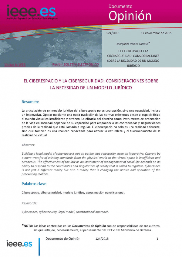 El Ciberespacio y la Ciberseguridad [Recurso electrónico] PDF : Consideraciones sobre la necesidad de un modelo jurídico
