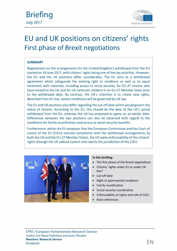 EU and UK positions on citizens’ rights : First phase of Brexit negotiations
