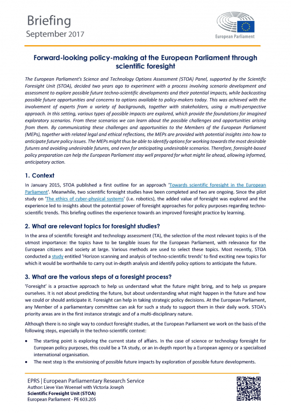 Forward-looking policy-making at the European Parliament through scientific foresight