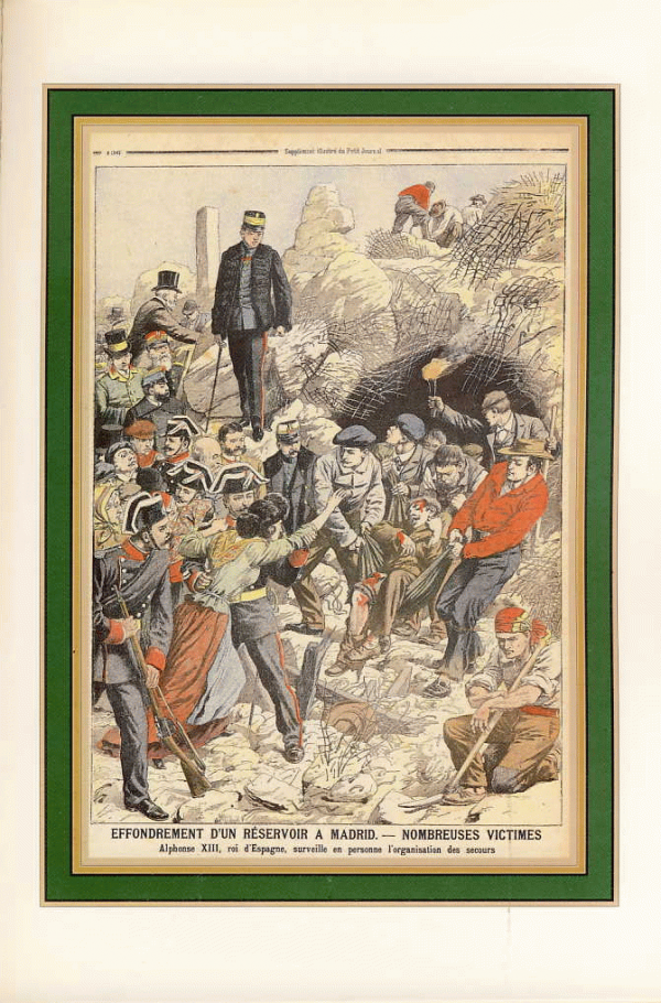 Effondrement d´un réservoir a Madrid. Nombreuses Victimes [Texto impreso] : Alphonse XIII, roi d´Espagne, surveille en persone l´organisation des secours