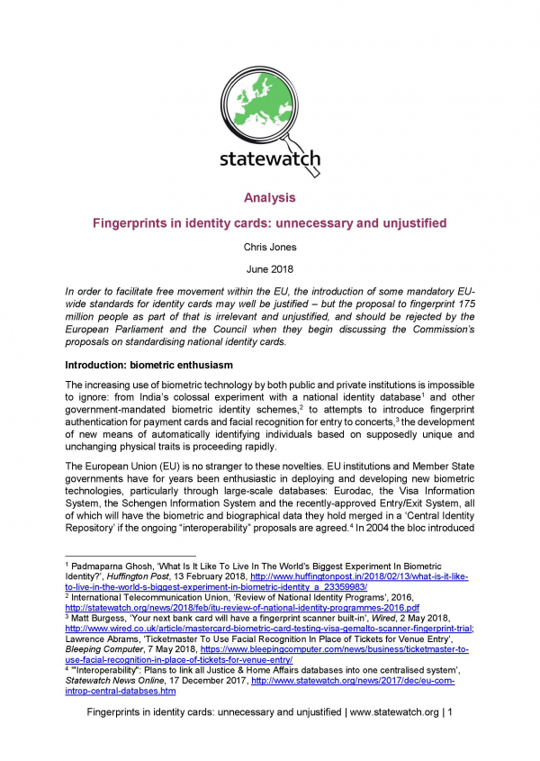 Analysis Fingerprints in identity cards Kees Hudig [Recurso electrónico]PDF : unnecessary and unjustified