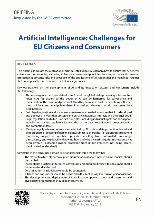 Artificial Intelligence : Challenges for EU Citizens and Consumers Giovanni SARTOR