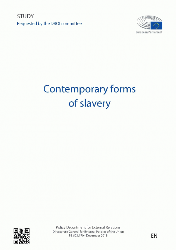 This briefing aims to clarify the concept of contemporary forms of slavery and analyse the legal obligations of States, as well as recent international developments at global and EU levels. It highlights the inconsistent application of the concept by global governance actors and discusses the inclusion of various exploitative practices within this conceptual framework. It also examines the prevalence of contemporary forms of slavery and assesses the policy framework for EU external action. The briefing then recommends possible action by the EU, including: promotion of a more consistent definition and use of the concept of contemporary forms of slavery and further clarifications on the relationship with the human trafficking and forced labour frameworks; a role for the EU as catalyst in achieving the Sustainable Development Goals and Targets in the field of all contemporary forms of slavery; support for standardising methods of data collection globally. Finally, the paper invites the EU to assess the possibility of drafting a new treaty on contemporary forms of slavery, as a way to fill some existing loopholes at the international level.