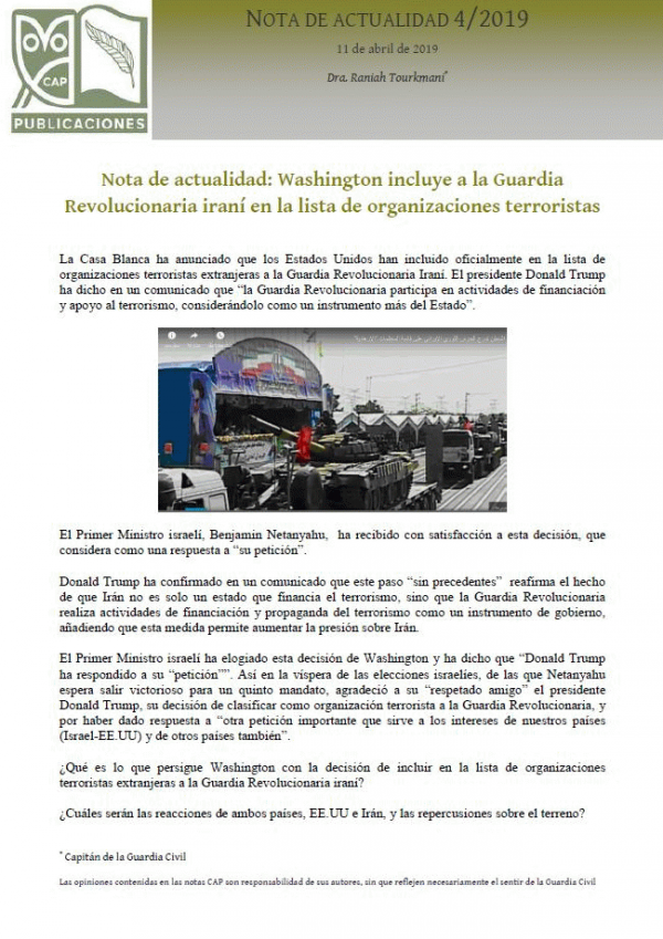 Washington incluye a la Guardia Revolucionaria iraní en la lista de organizaciones terroristas [Recurso electrónico] PDF Notas de Actualidad
