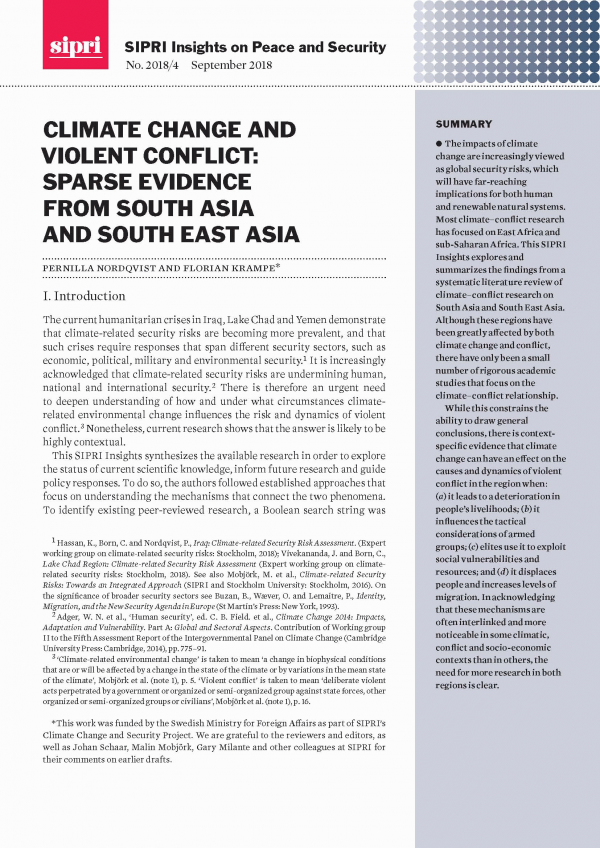 Climate change and violent conflict [Recurso electrónico] PDF : Sparse evidence from South Asia and South East Asia