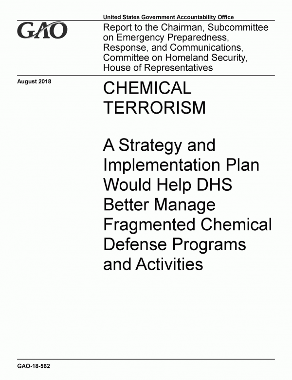 Chemical Terrorism [Recurso electrónico] PDF : A Strategy and Implementation Plan Would Help DHS Better Manage Fragmented Chemical Defense Programs and Activities