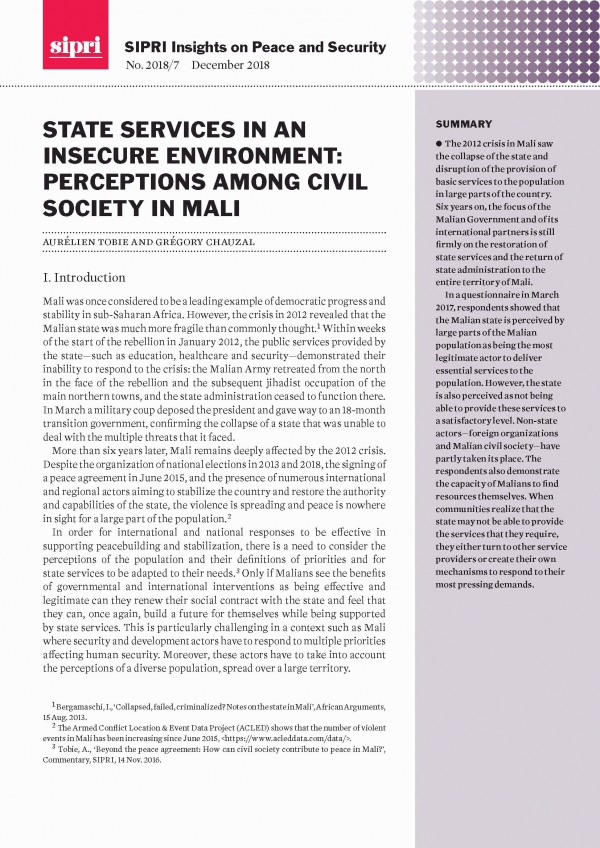 State Services In An Insecure Environment [Recurso electrónico] PDF : Perceptions Among Civili Society In Mali
