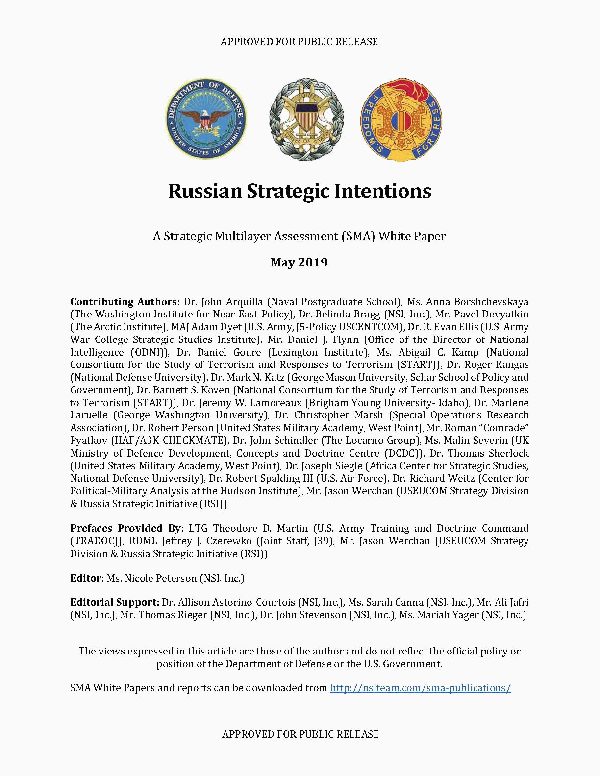 Russian Strategic Intentions [Recurso electrónico] PDF : A Strategic Multilayer Assessment (SMA) White Paper