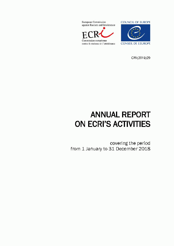 Annual Report on ECRI´S Activities European Commission against Racism and Intolerance (ECRI) [Recurso electrónico] PDF : covering the period from 1 January to 31 December 2018