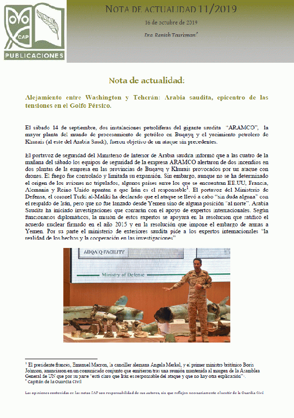 Alejamiento entre Washington y Teherán: Arabia saudita, epicentro de las tensiones en el Golfo Pérsico [Recurso electrónico] PDF Notas de Actualidad