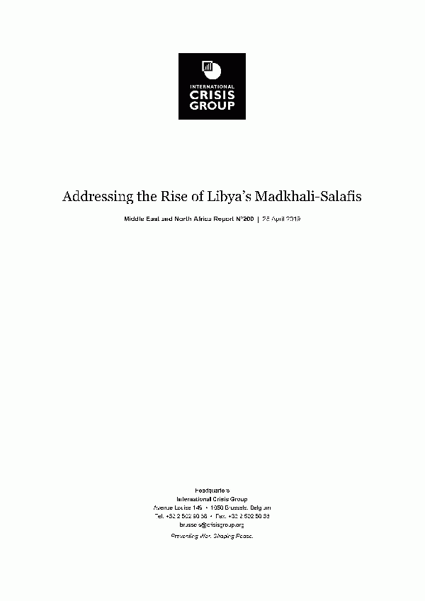 Addressing the Rise of Libya’s Madkhali-Salafis [Recurso electrónico] PDF