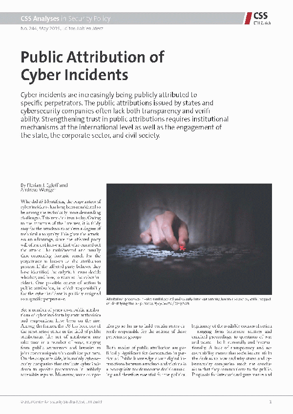 Public Attribution of Cyber Incidents [Recurso electrónico]PDF