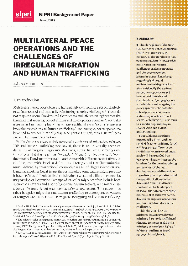 Multilateral peace operations and the challenges of irregular migration and human trafficking [Recurso electrónico] PDF