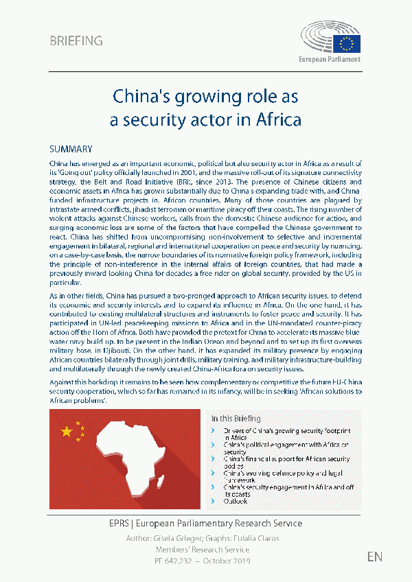 China has emerged as an important economic, political but also security actor in Africa as a result of