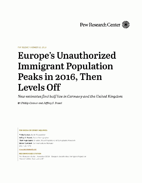 Europe’s Unauthorized Immigrant Population Peaks in 2016, Then Levels Off [Recurso electrónico] PDF : New estimates find half live in Germany and the United Kingdom