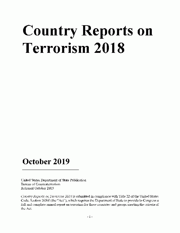 Country Reports on Terrorism 2018 Bureau of Counterterrorism. United States Department of State [Recurso electrónico] PDF