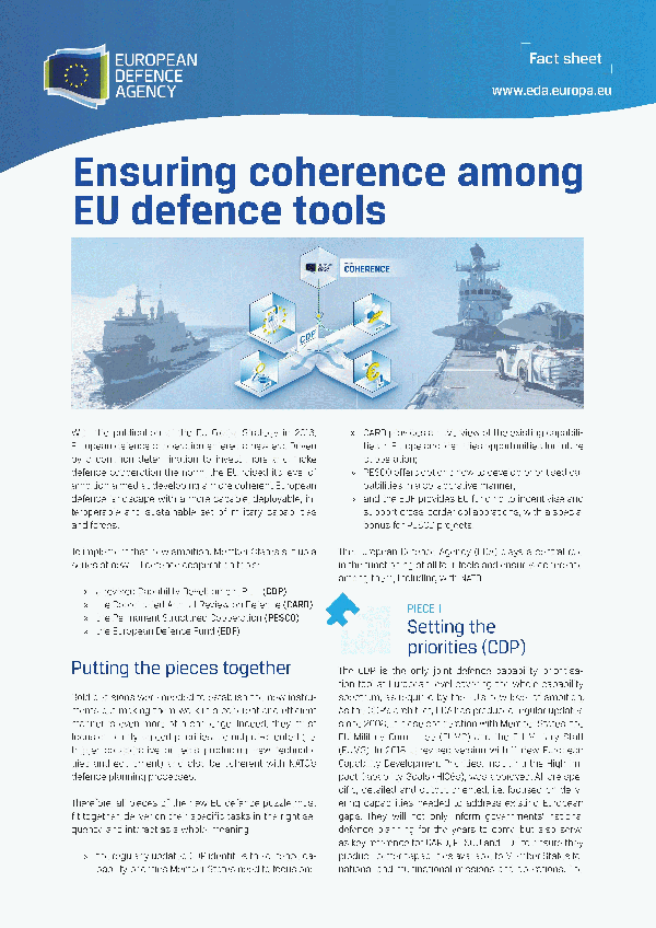 Ensuring coherence among EU defence tools [Recurso electrónico]PDF European Defence Agency