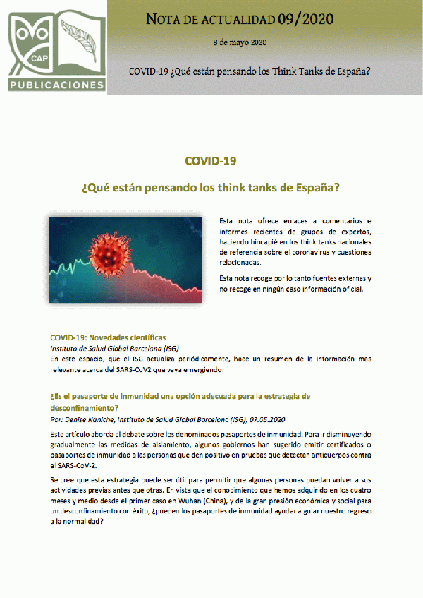 COVID-19 ¿Qué están pensando los think tanks de España? Notas de Actualidad