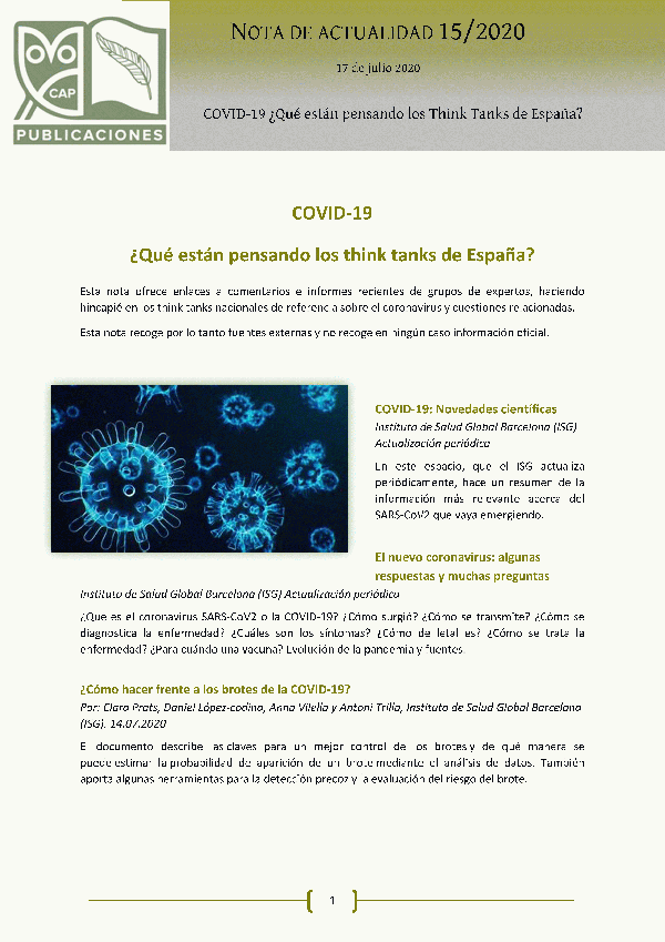 COVID-19 ¿Qué están pensando los think tanks de España? Notas de Actualidad