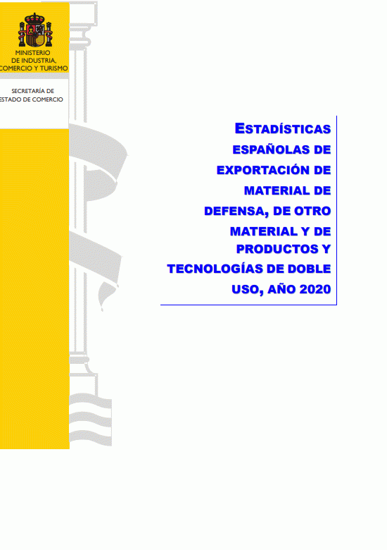 Estadísticas españolas de exportación de material de defensa, de otro material y de productos y tecnologías de doble uso, año 2020 Ministerio de Industria, Comercio y Turismo. Secretaría de Estado de Comercio