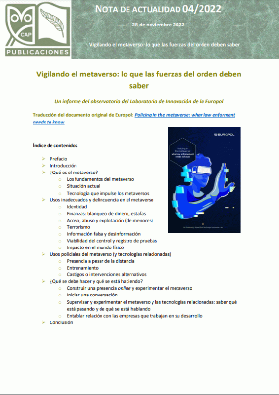 Resumen-traducción del documento original de Europol: Policing in the metaverse: what law enforcement needs to know