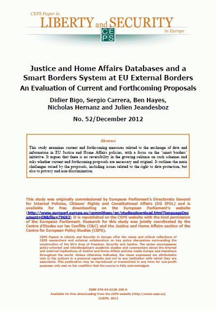 Justice and Home Affairs Databases and a Smart Borders System at EU External Borders . An Evaluation of Current and Forthcoming Proposals Didier Bigo...[et al] [Recurso electrónico]PDF