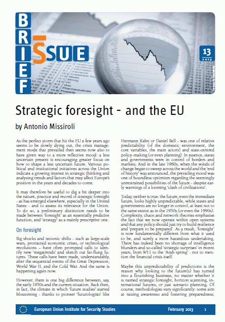 Strategic foresight - and the EU Antonio Missiroli [Recurso electrónico] PDF