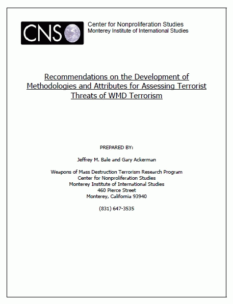 Recommendations on the development of methodologies and attributes for assessing terrorist threats of WMD terrorism [Recurso electrónico]PDF Jeffrey M. Bale and Gary Ackerman