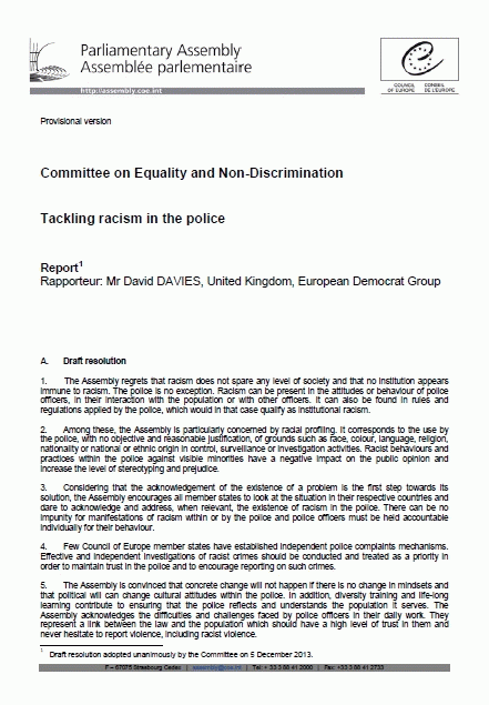 Tackling racism in the police Committee on Equality and Non-Discrimination [Recurso electrónico]PDF
