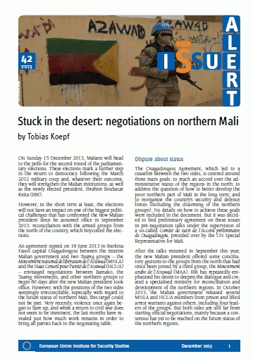 Stuck in the desert : negotiations on northern Mali [Recurso electrónico]PDF Tobias Koepf