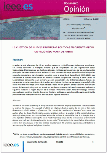 La violencia está a la orden del día en muchos países con población mayoritariamente musulmana. Las causas obedecen a múltiples factores que se desprenden de una organización social fragmentada. El concepto de las divisiones étnicas o religiosas parece ser uno de los condicionantes principales de este enfrentamiento violento. El caso concreto del mapa geopolítico diseñado por las potencias occidentales para la región, conocido como el acuerdo de Sykes-Picott (1915-1916), que consistía en el reparto de los restos del Imperio Otomano por parte de Francia y el Reino Unido, se ha constituido claramente en un problema y no en una solución a las divisiones actuales. Aunque se contemplan otros factores dentro de la violencia en Oriente Próximo, se piensa que una re-definición de las fronteras del mapa Sykes-Picott llevada a cabo por los propios países y actores políticos del mundo árabe-musulmán podría ser uno de los resultados concretos de los enfrentamientos violentos y guerras civiles en la región después de la llamada “Primavera Árabe”. Pero sin embargo, creemos que cualquier cambio o intento de nuevas fronteras políticas en esta inestable región contribuiría posiblemente a un empeoramiento de la situación regional y mundial.