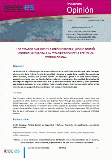 Los Estados fallidos y la UE [Recurso electrónico]PDF IEEE : ¿cómo debería contribuir Europa a la estabilización de la República Centroafricana?