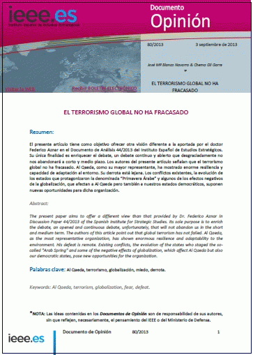 Federico Aznar en el Documento de Análisis 44/2013 del Instituto Español de Estudios Estratégicos.