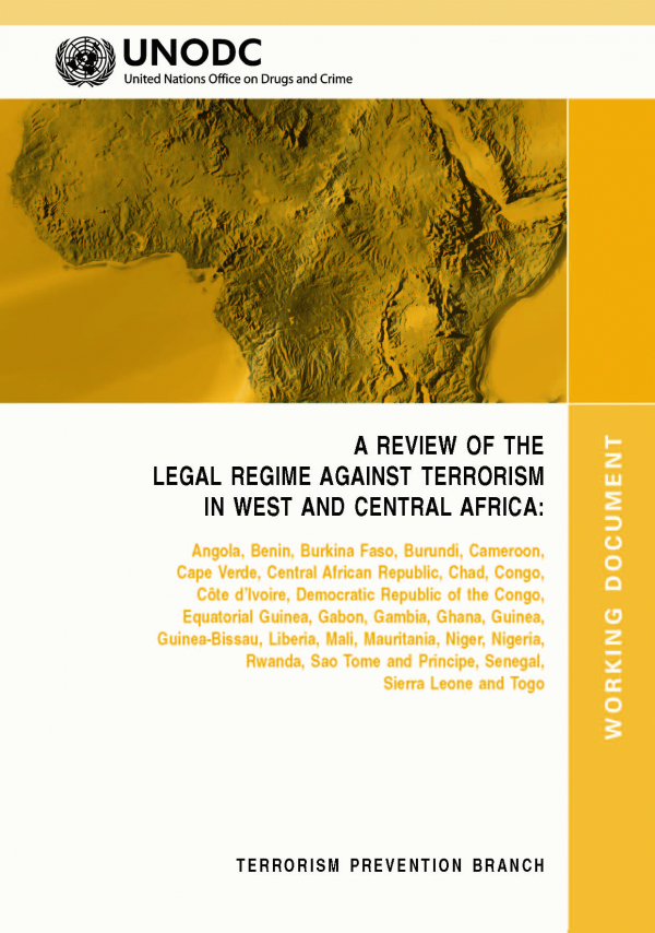 A review of the legal regime against terrorism in west and central Africa [Recurso electrónica] PDF : Angola, Benin, Burkina Faso, Burundi, Cameroon, Cape Verde, Central African Republic, Chad, Congo, Côte d’Ivoire, Democratic Republic of the Congo, Equatorial Guinea, Gabon, Gambia, Ghana, Guinea, Guinea-Bissau, Liberia, Mali, Mauritania, Niger, Nigeria, Rwanda, Sao Tome and Principe, Senegal, Sierra Leone and Togo