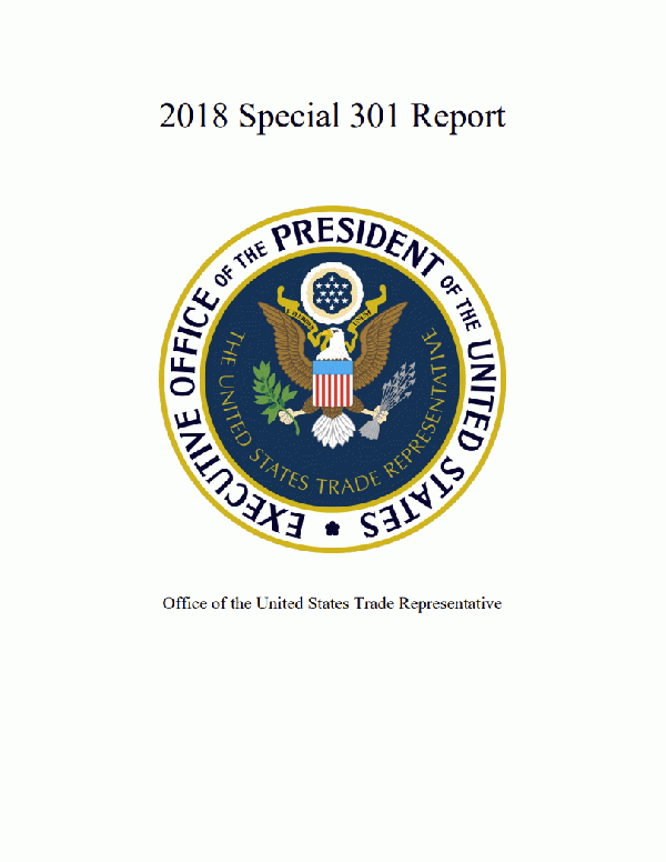 Publication details: 600 17th Street NW, Washington, D.C. 20006 Office of the United States Trade Representative 2018